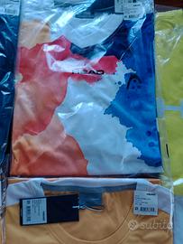 2 tute (1 in microfibra 1 in felpa), 3 pantaloncini microfibra 6 magliette (3 microfibra e 3 di cotone) 3 calze di cotone. Taglia XXL. Tutto nuovo con cartellini. Vendita solo in blocco