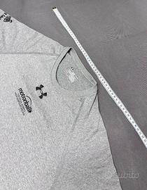 Vendo questa classica e versatile t-shirt Under Armour grigia. Presenta diverse grafiche con diversi sponsor. XXL vestibilita anche di una L/XL Lunghezza: circa 70 cm Larghezza (ascella-ascella): circa 50 cm