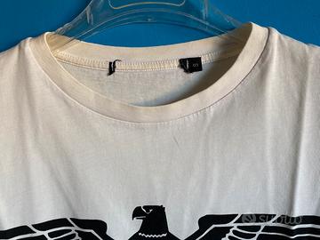T-shirt uomo BOY LONDON bianca con logo nero eagle stampato sul davanti. Taglia S. Lunghezza: cm. 62; spalle: cm. 43. Composizione 100% Cotone. No etichette.
