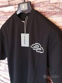t-shirt Balenciaga nera nuova con cartellino colore nero con scritta bianca taglia L