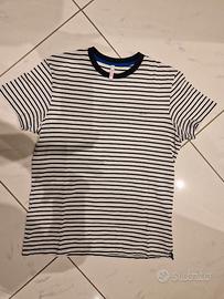 Colore: bianco con righe blu e bordo girocollo in contrasto nero/blu