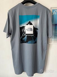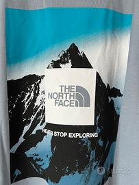 •Logo bianco sul petto e maxi stampa grafica sul retro con montagna e scritta Never Stop Exploring