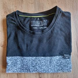 Maglia Urban District (Angelo Litrico) bicolore nero e grigio con fascia centrale mélange. Modello a manica corta, girocollo, tessuto in cotone. Taglia M da etichetta. Condizioni ottime, colore e dettagli come da foto. Vestibilità regolare.