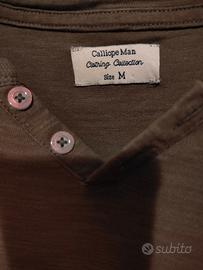 T-shirt verde con scollo a V, indossata poche volte. Taglia M, vestibilità normale (adatta anche a chi porta normalmente una taglia S), materiale 100% cotone.