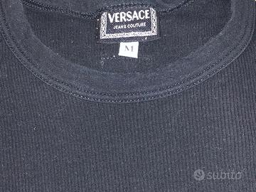 T-shirt nera Versace JC nera a costine tg L vestibilita slim perfetta , originale 100% in cotone , no resi spese escluse