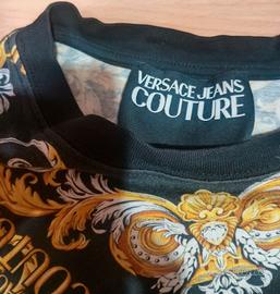 Maglietta Versace Jeans Couture originale, colore nero con dettagli oro. Taglia XS, vestibilità regolare. Tessuto leggero, perfetta per primavera/estate. Condizioni molto buone, indossata poche volte. Ideale per outfit casual o elegante. Disponibile per qualsiasi informazione.