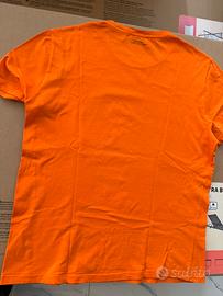 T-shirt Versace taglia L nuova senza difetti colore arancione con la stampa nera 100 per 100 cotone per ulteriori info contattatemi sono a vostra completa disposizione e offro massima serietà!