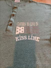 T-shirt vintage Kiss Line verde cachi con bottoni, taglia XL, usata poco in buone condizioni