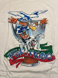 Rara t-shirt vintage Fortitudo Bologna originale anni '90/2000. Grafica iconica della rivalità bolognese: l’Aquila che schiaccia il coniglio.