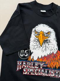 T-shirt rara vintage Harley Davidson 1985, in dotazione solo ai concessionari con grafica Harley Specialist e american bald eagle, cuciture tutte single stitch made in USA su Belton Tough Tee.