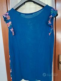 t short Esprit a motivi floreali retro blu mare volant alle spalle mis S ottimo stato usata poco