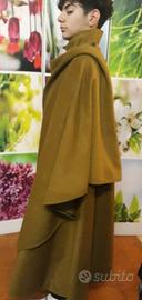 Tabarro veneziano artigianale creato a mano in pura lana vergine ; a ruota intera ; vintage venezia ; color senape ; disponibile anche in colore nero ; personalizzabile con scelta colore fodera interna e lunghezza mantello a scelta ; minimo 70 cm ad un massimo di 123 cm