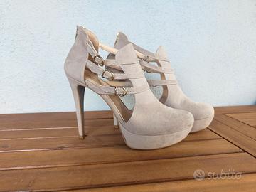 Tacchi beige con plateau e fibbie