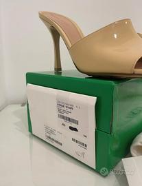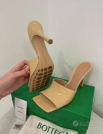 Sandali con comodo tacco beige firmati Bottega Veneta originali taglia 41, completi di scatola, dustbag e tacchetti di ricambio in vera pelle. Consegna a mano su Ravenna.