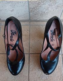 Tacchi neri in pelle con plateau Ottocento n'37. Vendo per inutilizzo 30€