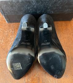 Nuovi. Plateau interno, la scarpa destra ha dei brillantini che non sono incollati bene o mancanti e sono un po' rovinati, la scarpa sinistra invece è perfetta. In vero cuoio, nella loro scatola originale. Numero 37