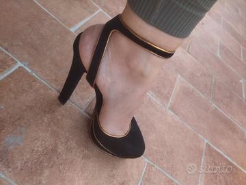 Tacchi Gucci nere e oro. Usate una volta. Senza scatolo originale. Unico difetto come in foto.