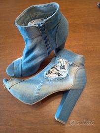 vendo tacchi in jeans, usati una volta tenuti benissimo e con cura. Hanno anche un leggero pizzo bianco ai lati. Cerniera comoda.