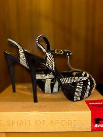 Tacchi gioiello neri con strass aurora boreale e plateau – Taglia 39