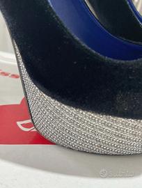 tacchi neri in velluto con plateau brillantinato tacco 13 usate solamente per prova a casa quindi come nuove numero 38 comprate da Pittarello