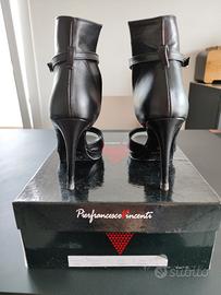 Tacchi alti neri in vera pelle di vitello made in Italy, indossate una volta. Taglia: 38 Tacco: 8 Marca: Pierfrancesco Vincenti Compra un paio di eleganti tacchi alti neri in vera pelle di vitello, realizzati con cura in Italia dalla rinomata marca Pierfrancesco Vincenti. Questi tacchi, taglia 38 europea con un tacco di 8 cm, sono stati indossati una sola volta, quindi sono praticamente nuovi e rappresentano un'ottima opportunità per chi cerca un accessorio di qualità senza compromessi. Lo stile sofisticato e la qualità dei materiali rendono questo paio di scarpe perfetto per ogni occasione, dalle serate eleganti agli eventi speciali. Approfitta di questa occasione per aggiungere un tocco di classe e raffinatezza al tuo guardaroba. - - - tacchi alti neri scarpe made in Italy tacchi in pelle scarpe eleganti taglia 38 Pierfrancesco Vincenti matrimonio festa eventi wedding party special event night date