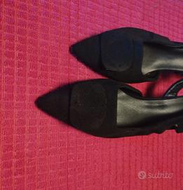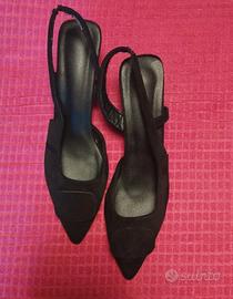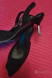 vendo due tacchi entrambi neri..uno è totalmente scamosciato con dettaglio di tacco nero ha dare luminosità alla scarpa...l'altro è molto particolare essendo con una trama tutta traforata..hanno entrambi tacco a spillo non molto alto..vendo anche separatamente.. scrivetemi per qualsiasi info 🤗