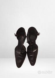 Tacchi neri con cinturino, taglia 35. In vero cuoio, made in Italy.