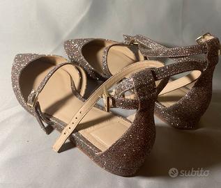 Tacchi bassi Glitterati “What for” usati, ma, apparte per la suola, in condizione eccellenti.