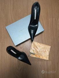 Tacco a spillo 12 in acciaio. La scarpa è in pelle nera tenuta maniacalmente con il corredo completo indossata due volte