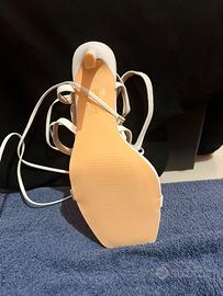 Tacco bianco con tacco a spillo e lacci alla caviglia. Elegante e versatile, ideale per cerimonie, serate speciali o per dare un tocco glam ai tuoi outfit