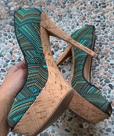 Decollete con plateau Guess tacco 12 cm (plateau cm 3) numero 35 . Praticamente nuovo ,indossato pochissime volte (vedi foto ) Sporca solo sotto la suola