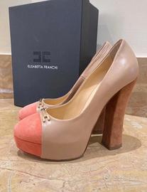 Tacco in pelle e camoscio, rosa e beige come nuove