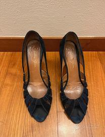 Tacco 9 cm Camoscio blu Originale anche se privo della sua scatola