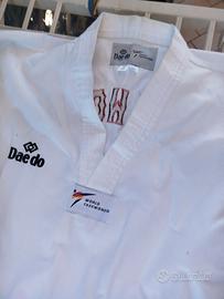 Completino Mizuno 110cm completino Barrus 130/140 cm e completino Daedo Ufficiale gare 150/160 cm. completo di protezioni braccia, parastinchi, caschetto, corazza, più cinture gialla mezza gialla mezza verde e mezza blu