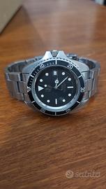 bellissimo tag heuer 1000 di fine anni 80 (transizionale con componenti Heuer) diver con cassa acciaio monnin Jumbo da 41mm, con ghiera girevole unidirezionale, tutto in condizioni eccezionali 9/10, quadrante originale dell'epoca con grafica oro (rarissima prima serie) su fondo nero matt e trizio in pieno stile submariner sfere Mercedes originali e corona a vite tipo defy