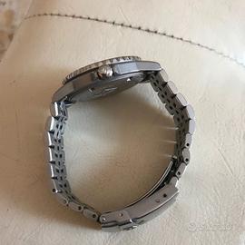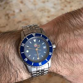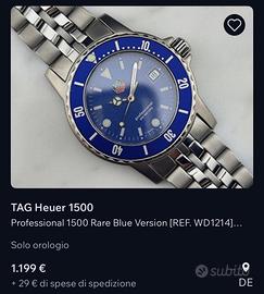 TAG HEUER DIVER BLUE OTTIME CONDIZIONI DIVER 200 METRI QUARZO ESA DAL SITO HEUER: Nel 1990, TAG Heuer decide di abbandonare la Serie 1000, poiché il look funzionale della collezione non era adatto all'aspetto elegante della Serie 2000. Così, si apre la strada alla Serie 1500, che offriva le funzionalità della Serie 1000 unendole ad alcuni degli stili della Serie 2000. La Serie 1500 era disponibile unicamente con movimenti al quarzo. I modelli erano animati dal movimento ETA 955.112 oppure ETA 955.114, ed entrambi sfoggiavano lo stesso design a sette rubini. Quando il presidente Barack Obama indossa un orologio Serie 1500 in campagna elettorale e alla Casa Bianca, il modello acquista una fama mondiale. La Serie 1500 era posizionata sotto la Serie 2000, poiché la nuova collezione offriva "sicurezza e affidabilità" ad un prezzo interessante. I catalogo del 1997 descrive la Serie 1500 come un modello senza fronzoli che offre tutte le caratteristiche in un autentico orologio sportivo con un design semplice ed efficace. Gli orologi offrono il look moderno della Serie 2000, con linee più nette, per esempio le anse più sottili. MIO OROLOGIO UNICO PROPRIETARIO SCATOLA, CONTROSCATOLA, GARANZIA, BATTERIA NUOVA, BRACCIALE CON TUTTE LE MAGLIE, VERSIONE BLUE INTRODOTTA NEL 1996 ( LA GARANZIA DEL MIO è DEL 1998). NOTA: non è mai stata offerta una versione cronografo della Serie 1500, nè una versione automatica! INTROVABILE IN QUESTA VERSIONE, LA PIù RARA E RICERCATA CASSA DA 38MM CORONA E FONDELLO A VITE, VETRO MINERALE ANTIGRAFFIO LA SCATOLA VINTAGE DA SOLA VALE 100€ E IO LA INCLUDO NEL PREZZO GRATIS !!! UTILIZZATO SEMPRE CON CURA, ANCHE AL MARE, SEMPRE LAVATO E RIPOSTO A FINE STAGIONE. ASTENERSI PERDITEMPO NO PERMUTE NO SCONTI SOLO CONTANTI O BONIFICO NO PAYPAL NO TUTTOSUBITO RITIRO A MANO A MILANO O SPEDIZIONE A VOSTRE SPESE A PARTE MAX SERIETA E RISPETTO, GUARDATE I MIEI FEEDBACK PER FAVORE NON CONTATTEMI PER FARE OFFERTE RIDICOLE E PROPORRE BARATTI IMPROBABILI