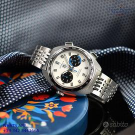 Tag Heuer Autavia cronografo mancino “Jo Siffert” acciaio, anno di produzione 2003, vetro zaffiro bombato, quadrante colore bianco opaco a due contatori orrizontali schema cromatico “Siffert”, indici e sfere al luminova, movimento meccanico a carica automatica, bracciale acciaio con chiusura deployante originale Tag Heuer.