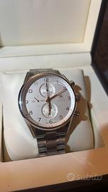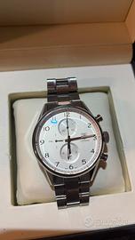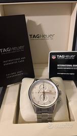 Bellissimo cronografo Tag Heuer Carrera con movimento di manifattura calibro 1887, ottime condizioni e full set. Bracciale originale Tag Heuer con tutte le maglie. Cassa 43 mm acciaio con indici e lancette oro rosa. Movimento cronografico con ruota a colonne, visibile dal fondello in vetro. Non permuto con nulla.