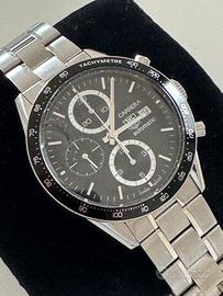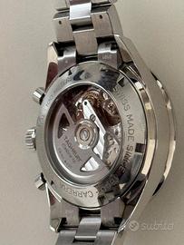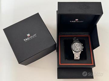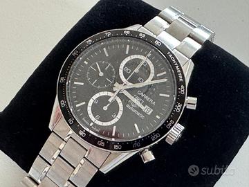 Un bellissimo e classico cronografo Carrera Calibre 16. In ottime condizioni. Funziona benissimo. Normali graffi superficiali dovuti all'usura tipica. Cristallo in vetro zaffiro in perfette condizioni. Incluso di maglie di acciaio aggiuntive per la perfetta regolazione del cinturino. Completo di scatola originale e di tutti i documenti. Acquistato in gioielleria in provincia di Venezia. Altre foto o video disponibili su richiesta. Da non perdere! A beautiful and classic Carrera Calibre 16 chronograph. In excellent condition. Works very well. Normal surface scratches due to typical wear. Sapphire crystal glass in perfect condition. Includes additional steel links for perfect adjustment of the strap. Complete with original box and all papers. Purchased in a jeweller's shop in the province of Venice. More photos or video available on request. Reach out! Dati basilari Marca TAG Heuer Modello (Orologio) Carrera Calibre 16 Numero di referenza 1860 Carica Automatico Materiale della cassa Acciaio Materiale cinturino Acciaio Anno di produzione 2009 Condizione Usato (Ottimo) L'articolo presenta segni di usura lievi, come ad esempio graffi leggeri, ma non percepibili al tatto. Corredo Con scatola originale e documenti originali Genere Orologio da uomo/Unisex