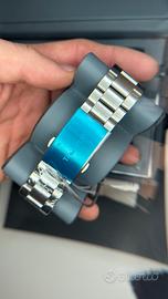 L’orologio è nuovo, mai indossato, ancora con pellicole protettive, completo di scatola originale, card di garanzia e documentazione.