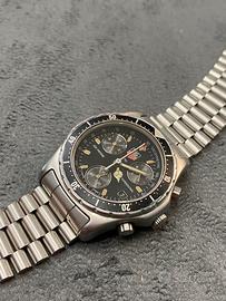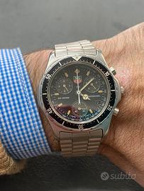 Eccezionale Tag Heuer MK1 Quartz Chronograph CE1112, indici virati “caramello” rattrappante. Referenza: CE 1112 Anno: 1990 Calibro: quarzo Chrono, Tag Heuer Seriale: H55458 Materiale cassa: acciaio Diametro cassa: 37 mm Quadrante: nero, indicatori virali spettacolari Vetro: zaffiro perfetto Cinturino: 21 cm, completo, super serrato Corredo: soltanto orologio Condizioni: migliore sul mercato, mai lucidato, ultrasuoni, anse originali Funzionamento: perfetto Punteggio: 9 su 10 Le foto sono parte integrante dell’annuncio, prestare attenzione, non si accettano resi o reclami, spedizione entro le 24 ore. Dichiaro l’originalità del prodotto. Spedizione con UPS/DHL. Orologio disponibile su altre piattaforme di compra/vendita.