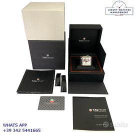 Per conoscere il prezzo e le caratteristiche tecniche dei nostri orologi visita il nostro sito ufficiale: https://lwmitalia.com/it Tutti i nostri orologi vengono verificati e revisionati dal nostro laboratorio specializzato “KeepTime Lab”: https://keeptimelab.com/it/ TAG Heuer Monaco cronografo Edizione Limitata GULF acciaio, anno di produzione 2006, ghiera acciaio liscia satinata, vetro plastica bombato, quadrante GULF colore bianco con data a due contatori orizzontali, indici e sfere al LumiNova, movimento meccanico a carica automatica, cinturino Racing in pelle di alligatore opaco colore nero con chiusura deployante acciaio originale Tag Heuer. Orologio TAG Heuer originale in ogni sua parte, molto raro, revisionato in ottime condizioni, segni di usura assenti o appena visibili, full set (scatola, accessori vari, garanzia card ufficiale Tag Heuer), garanzia/dichiarazione di vendita del nostro negozio valida per 12 mesi.