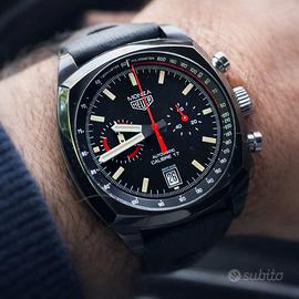 TAG Heuer Monza Calibre 17 – 40th Anniversary Limited Edition Il Gruppo Monteoro Roma propone TAG Heuer Monza Calibre 17, realizzato per il 40° anniversario del celebre modello Monza. Edizione limitata numerata, particolarmente apprezzata per il suo design racing e il legame con la storia del marchio. Caratteristiche tecniche: - Movimento automatico Calibre 17 - Funzione cronografo - Cassa in titanio con trattamento PVD nero - Quadrante nero con dettagli rossi - Datario a ore 3 - Vetro zaffiro - Impermeabilità 100m Condizioni: Orologio in condizioni molto buone, perfettamente funzionante. Cinturino originale TAG Heuer appena sostituito (nuovo) con chiusura deployante. Dotazione: - Orologio fornito con scatola in legno luxury (non originale) Nota: Non sono presenti scatola e documenti originali. Proposta da operatore professionale. Prezzo: € 3.790 Possibilità di pagamento in 3 rate. Possibilità di visione su appuntamento presso la nostra sede. Per ulteriori informazioni non esitate a contattarci. Dai uno sguardo alle altre nostre inserzioni! Siamo un'azienda specializzata nella compravendita di preziosi e beni di lusso, pertanto in ogni tuo acquisto avrai la garanzia di essere seguito e servito, in ogni fase, da esperti del settore. Contattaci senza esitazione per info più dettagliate!