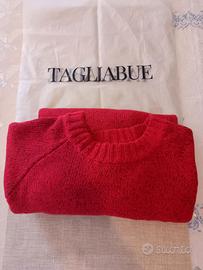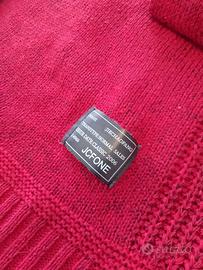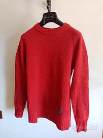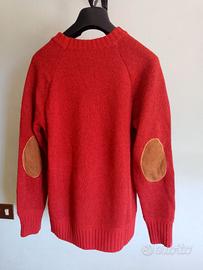 Tagliabue maglione uomo rosso con toppe marroni.