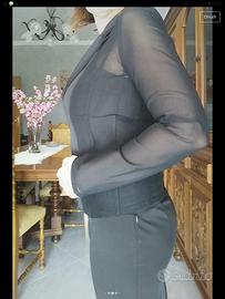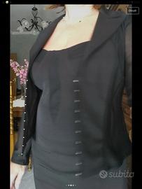 Gonna tubino spacco centrale, giacca maniche lunghe trasparenti e top bretelline con verniera laterale taglia 42