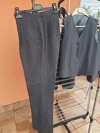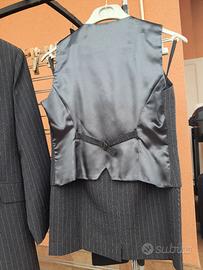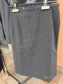 tailleur grigio gessato giacca lunga gilet pantalone e gonna sopra il ginocchio tg 4o in perfette condizioni .