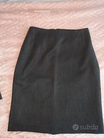 Tailleur grigio scuro, indossato 1 volta completamente foderato . Lunghezza giacca cm70 modello sciancrato in vita. La gonna è lunga cm 55 con un piccolo spacco sul retro .
