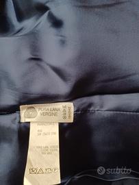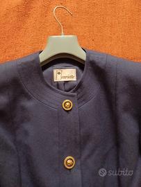 Tailleur Donna taglia 48 in Pura Lana Vergine colore bluette. Misure : Gonna lunghezza cm 66,5 , vita cm 41. Giacca lunghezza cm 70, spalla cm 46, distanza ascelle cm 43 lunghezza manica cm 60.