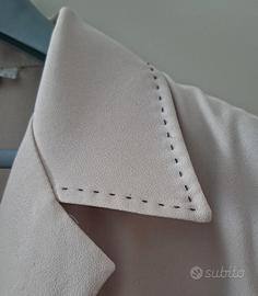 Tailleur donna classico estivo color corda con cuciture contrasto. Gonna con cerniera e fodera. Tessuto in poliestere morbido cadente - Made in Italy taglia 52/54 Come nuovo. €.35
