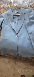 vendo causa spazio tailleur taglia 46 color cielo giacca e pantalone,pari a nuovo.